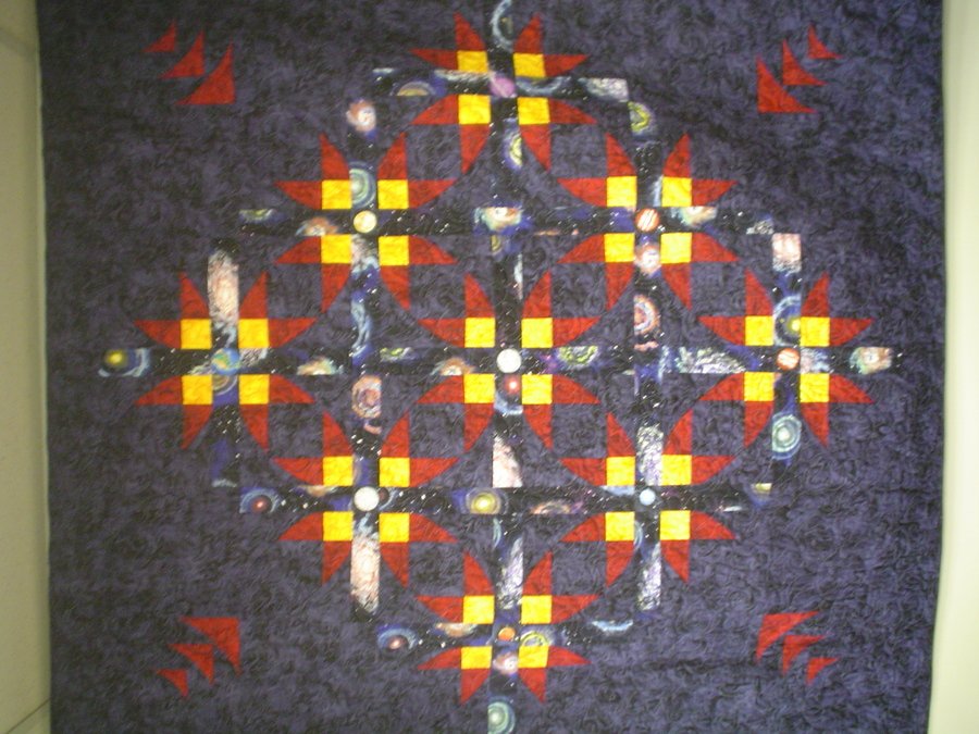 jbquilts Mystery of Space - This is a modified Mexican Star. The blocks are doubled in size from the original design. This quilt was started in a mystery class and I used space fabrics.