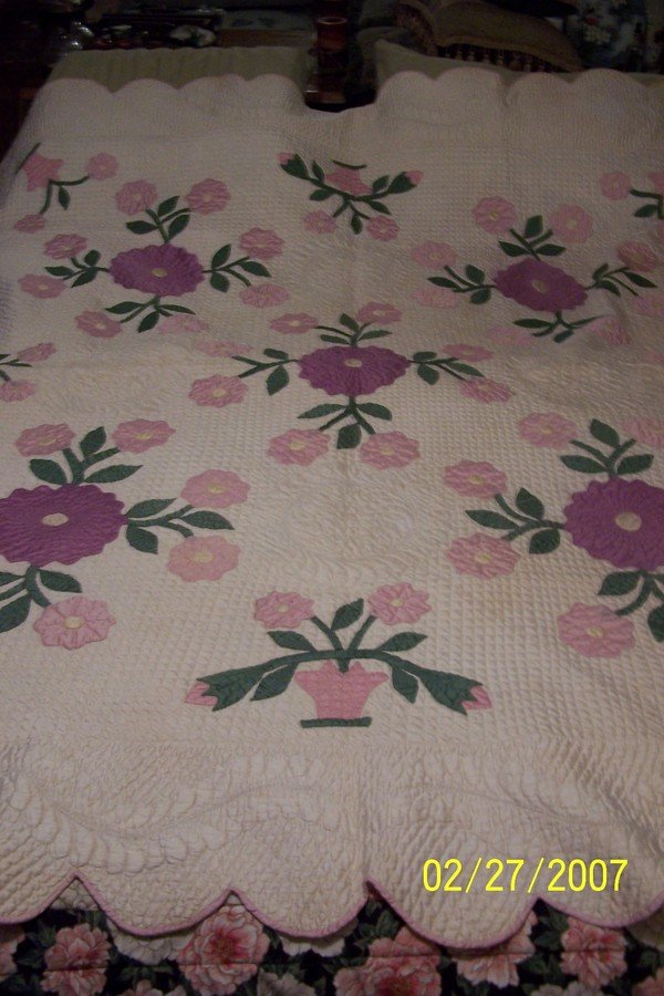 mray300 Unnamed - I found this quilt in an antique store in Jefferson, Texas. It is heavily and beautifully hand quilted. The fabrics are a lovely sateen.