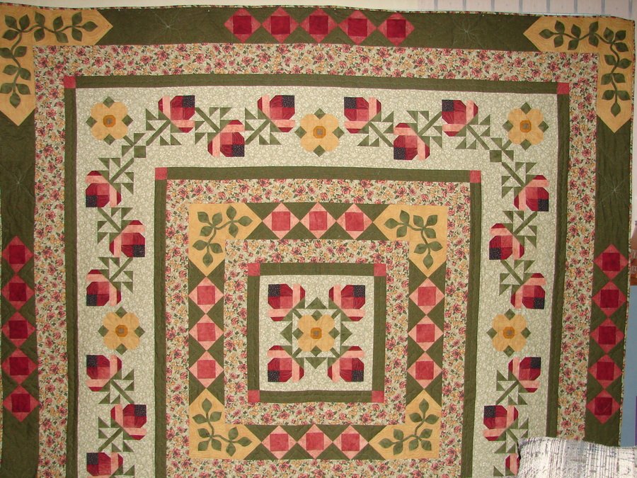 | Design Source - Description | I revised a rose block found in a Thimbleberries book, but designed the rest of the blocks and the quilt design myself in EQ5. It was 104 in. square. |