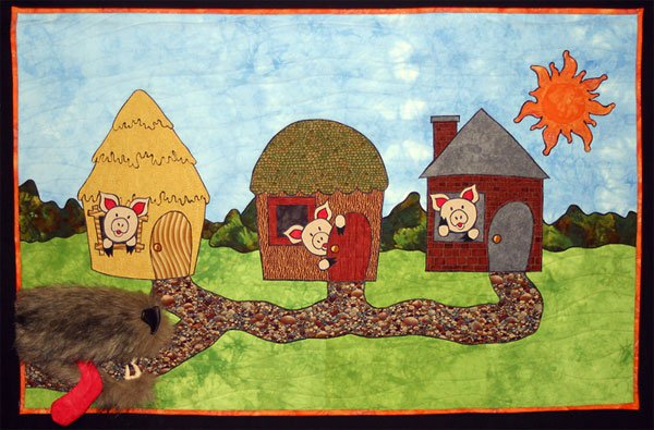donlusk The Three Little Pigs - Fabled Fibers - THE THREE LITTLE PIGS was created as part of "Fabled Fibers", a collection of 50 quilts based on classic fairy tales and original stories. The quilts were made by quilters from all over the U.S. The premiere display of the entire collection will be at the 2007 Houston International Quilt Festival.