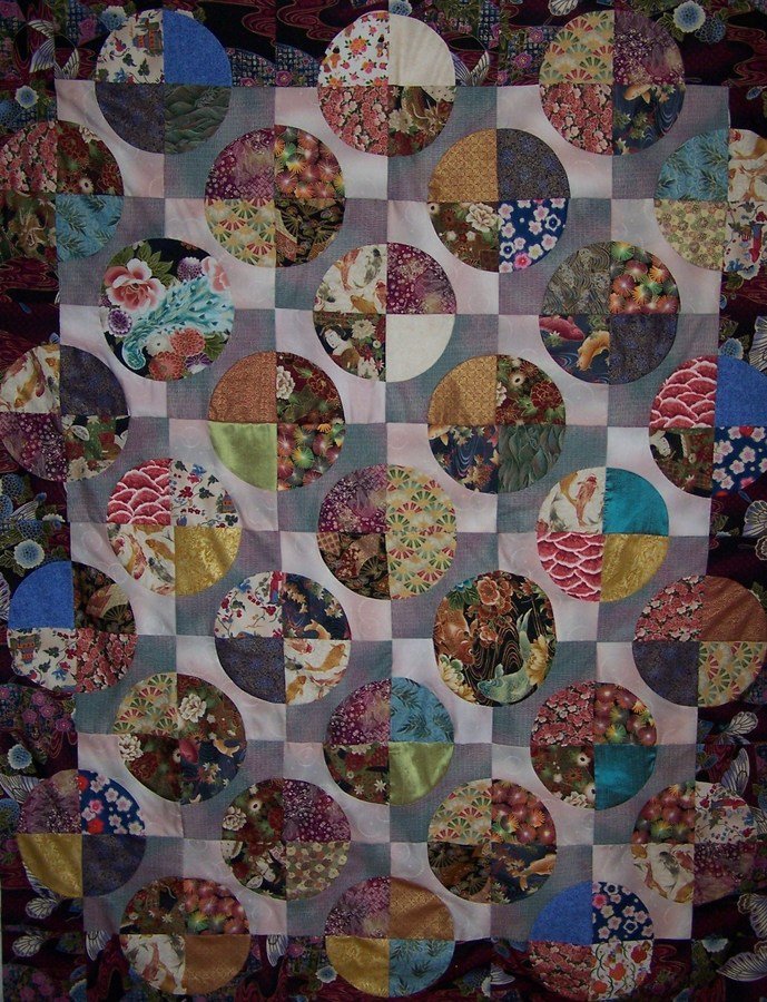 | Design Source - Description | Currently on the quilting frame, this is a display of some of the wonderful Asian inspired fabrics. The backing includes a woodblock type of print from Japan. |