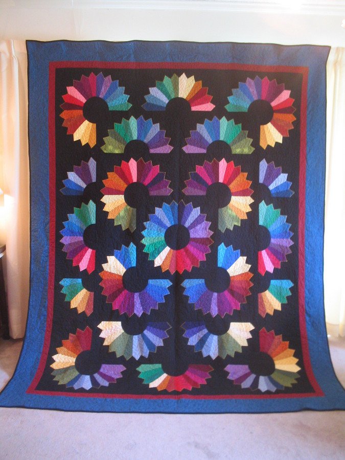 | Design Source - Description | I saw this arrangements on a old state agency phone book. Want to do a special quilt for a great friend and used the arrangement of fans. |