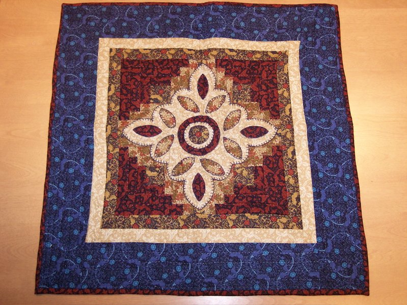 GrandmaBonnie Log Cabin Bouquet - A store in Grand Rapids, MI had a contest to use these fabrics. I chose this pattern and won a gift and a ribbon. (Honestly, i can't remember the gift and i have moved and can't find the ribbon) The center is completely button hole stitched. I enjoyed making this pattern...i love to button hole stitch.