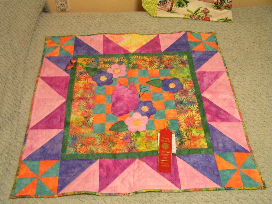 joanne94w Summer Dream - Applique center on checkerboard with hand dyes for star points in the border.