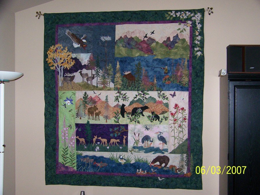 JenJen At Home in the Woods - Love this applique. Finished in 1 month and started colleting the next one. I take it slow when my hands cramp but as you can see, I'm DONE & amazed!