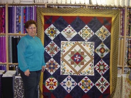 | Design Source - Description | Large center medallion (pieced) surrounded by appliqued triangles. Twelve different pieced blocks, each also containing applique. |