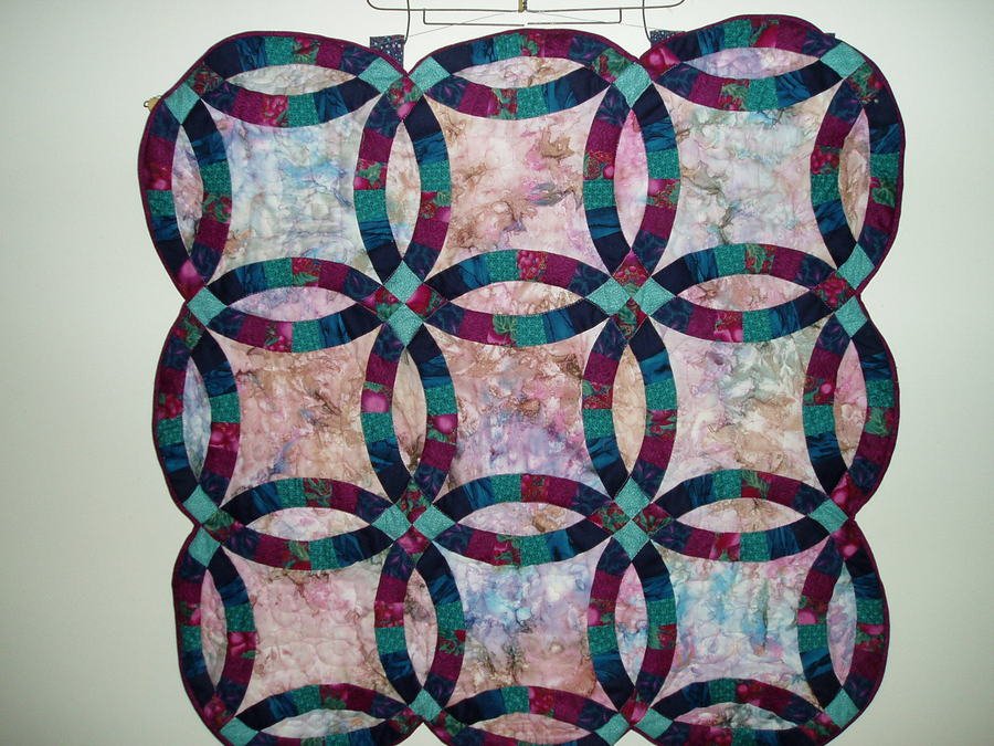 | Design Source - Description | Made this in a class, using acrylic templates. Call it M&M Ice Cream because the background fabric looks like melted M&M IceCream! |