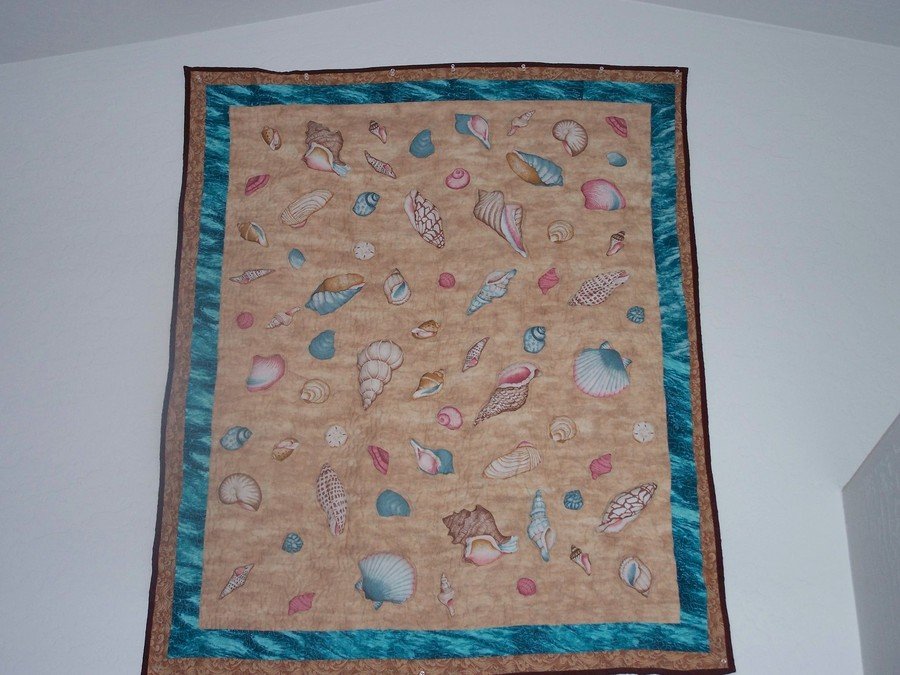 | Design Source - Description | The shells were fussy cut from fabric and appliqued onto the background. Several of the shells have been stuffed trapunto style for added dimension. |