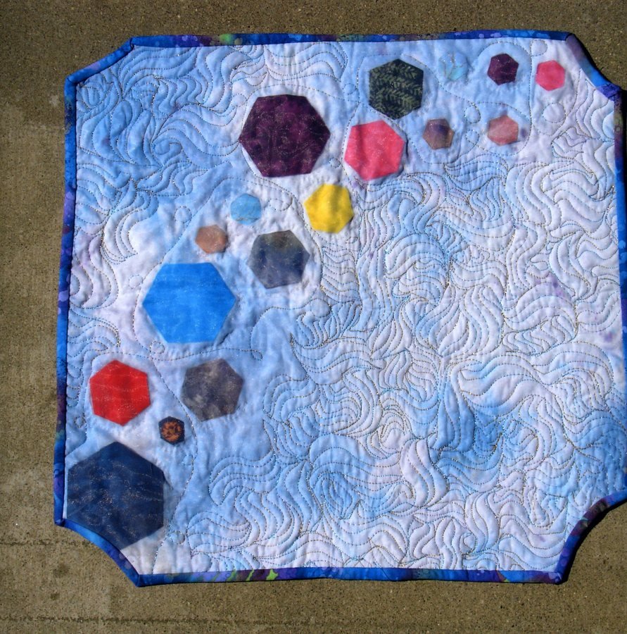 crgreg Floating Hexagons - This was a Cities and Guilds project for the first Patchwork & Quilting online class. The activity said to shadow applique hexagons of different sizes.