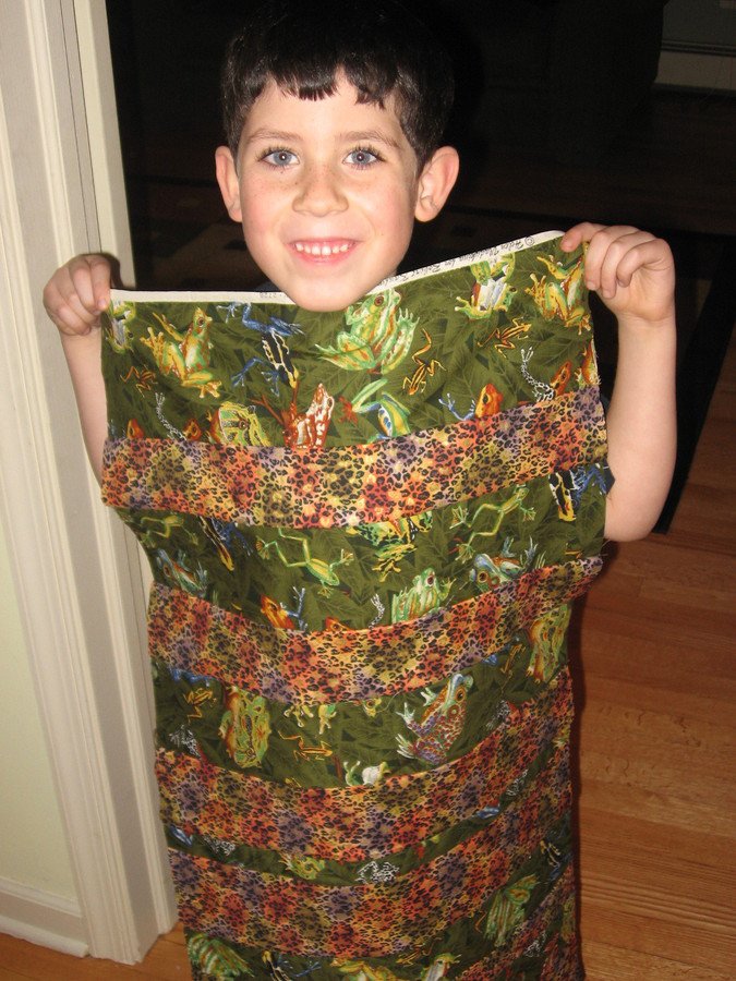 LisaP8 Jeremy's Jungle Frogs - This is the first project Jeremy made on his own, with his Hello Kitty Janome sewing machine. He was 5 when he pieced this top. It's still a UFO, but he plans to quilt it this summer.