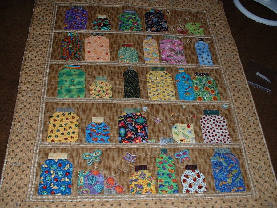 Marlene Marissa's Bug Jars - This was adapted from a purchased pattern, that I no longer have. It's quilted with glow in the dark thread