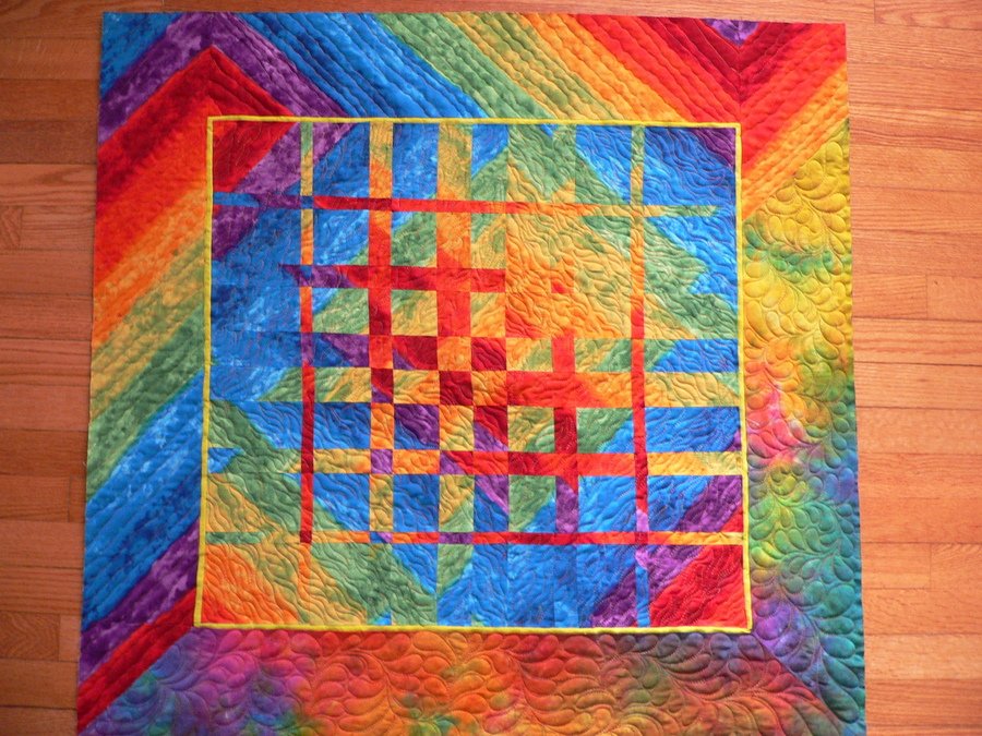 johnthequilter Touched by Ricky (Tims that is) - Ricky came to our guild, Capitol City Quilt Guild, Lansing, MI in September of 2004. I took the convergence class as well as the Kool Kaleidescope class. In the convergence class, Ricky toured the room reviewing fabric choices and when he came to my stack, selected the piece of Electric Rainbow fabric and began to tell me how wonderful it would look if I did ....... obviously he could see a finished quilt. i don't have that visualization talent. He was absolutely correct. It turned out to be wonderful and I do love it.