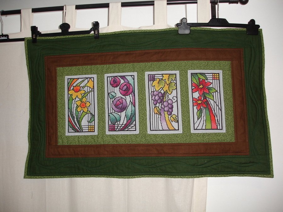 | Design Source - Description | Cross stitch panels finished as a small quilted wall hanging. |