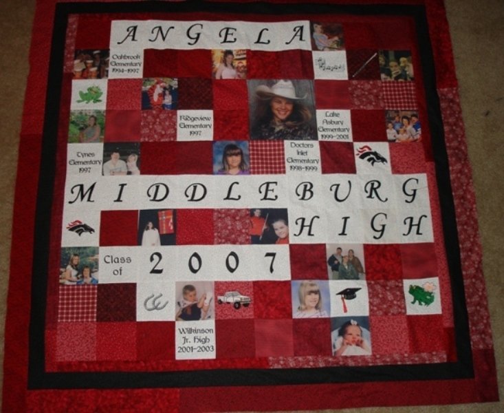 chermm Angela You Did it! - I made this quilt for my DD graduation from High School. All the lettering and small pictures are machine embroiled and photo using photo cloth printed from computer. Construction is using the interfacing foundation method. I still have not quilted it, trying to figure out the best way to quilt around the photos and still look good and not hit and miss areas.