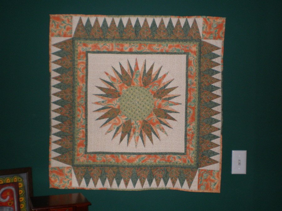 | Design Source - Description | I just loved Mariner's compasses. The compass and border points were handpieced, while the larger construction was done on the machine. It is entirely machine quilted. |
