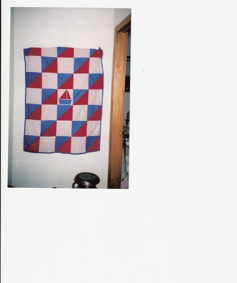 | Design Source - Description | Quilt made for my niece's first baby,flannel& cordoroy.@nd attempt@machine quilting with DSM.Nursery was decorated with nautical theme. |