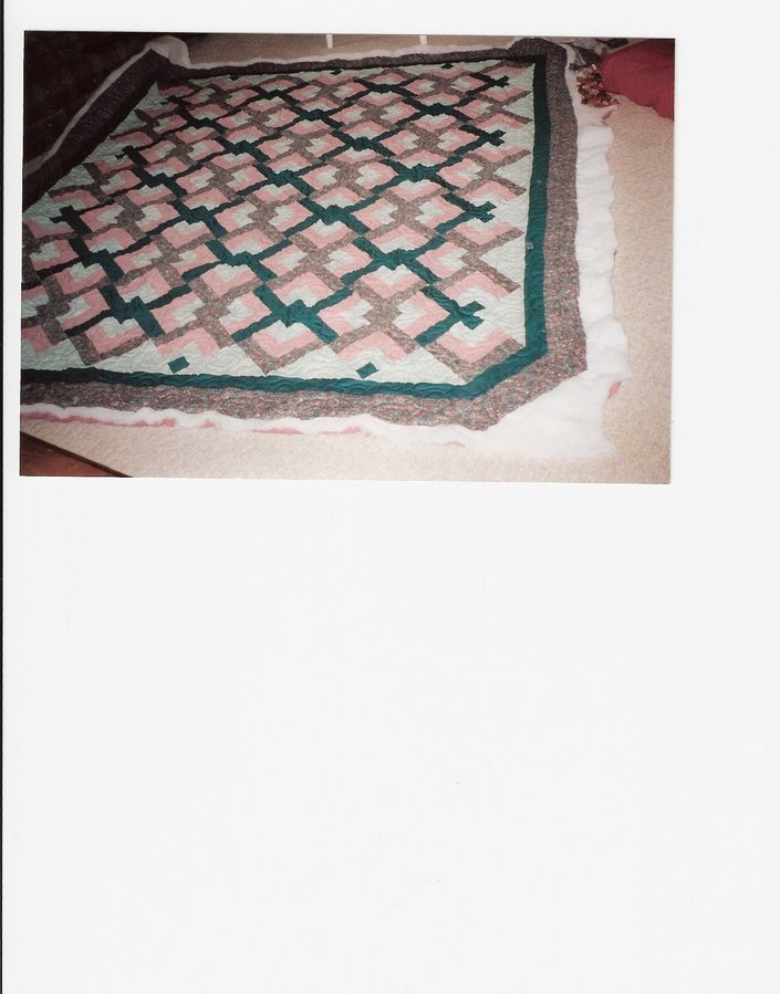 1st quilt made 15yrs ago for a gift ,never finished after wedding plans were cancelled. Completed 2yrs ago ,1st quilt done on long arm fo r practice with rose pantograph . Taste sure changed in 15yrs. |