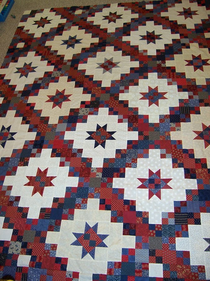 quilter2964 Back Home - I made this quilt for my parents. The name "Back Home" is symbolic to me because of the huge amount of support and love my parents showed me after I moved back home from out of state following a divorce with my two dogs, all my furniture and stuff....no job, very down--I could not have picked myself up and dusted myself off without their support and love.