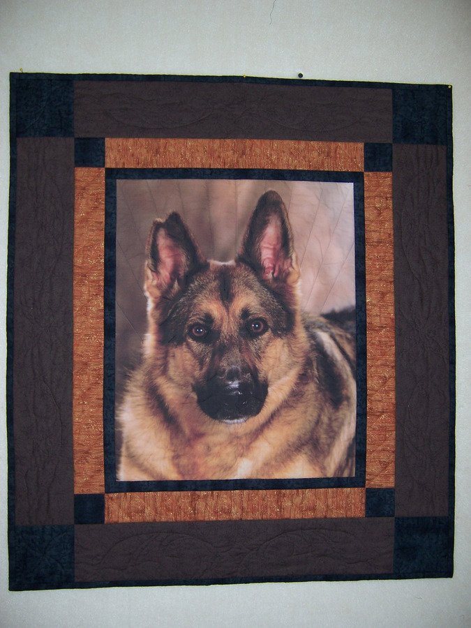 lonewolf Maggi - I love this little quilt because it's our wonderful German shepherd, Maggi. I took a Imagery on Fabric class and printed out Maggi's poster in class. It's not a very difficult quilt, but I have to say it's my favorite because it's Maggi.