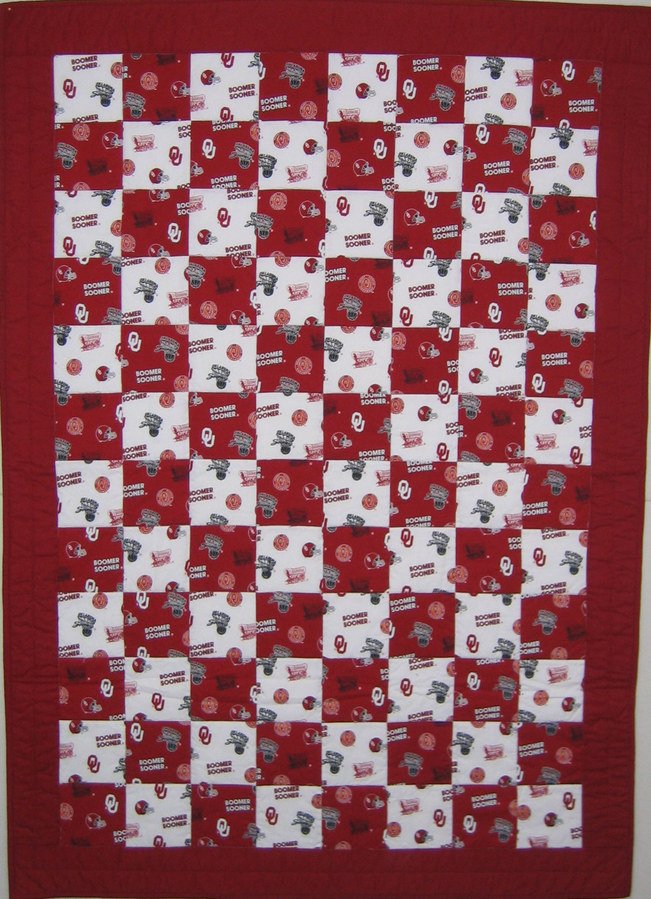 mrsbegs OU Baby Quilt - My grandaughter is a HUGE University of Oklahoma sports fan, so when they decorated their nursery in OU memorabilia, the quilt was a natural.