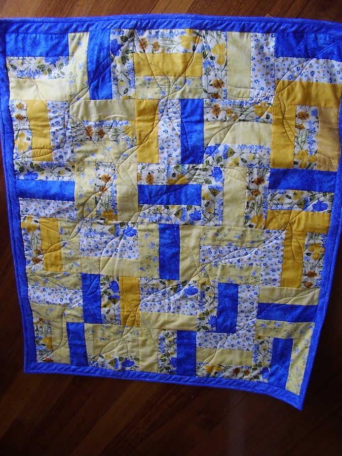 Joyanne Waiting for Sarah - I made this blue and yellow french provincial colours in a post and rail pattern out of flannel as a thank you present for a friend.