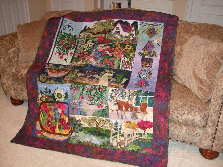 CFEcindy In Full Bloom - When I saw these colors I just had to make this quilt....and a rabbit in the quilt too ! I have two rabbits as pets, so this was perfect for me. :-)