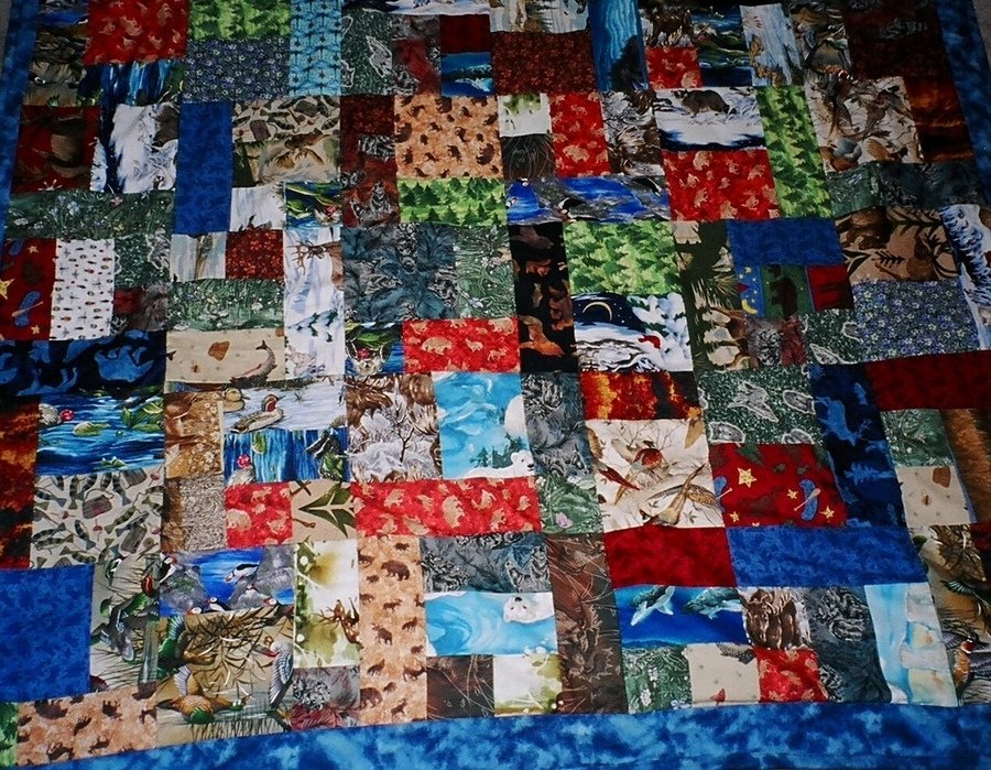 EBF1224 Alaskana Brick Road - This quilt was made in a hurry when my friend (and ex-husband) needed emergency open heart surgery and was going to be medivacced to Seattle. He lives in a cabin over 100 miles from civilization, only accessible by boat or snowmachine (or dog sled!) depending on the time of year. It was a great reminder to him of home, and he recovered and is back in his cabin in the Alaskan wilderness.