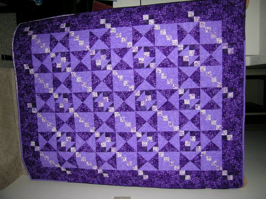 | Design Source - Description | I bought the material because it reminded me of my Mom who died three years ago; her name was Violet. The quilt was completed during a mystery week at LQS. |