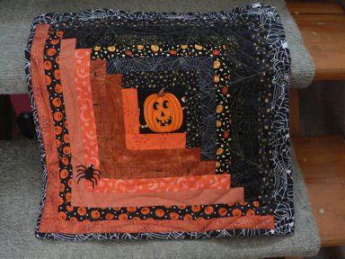 | Design Source - Description | Halloween gift for my Mum. Quilted with a gold sparkly 'web' and a happy, fat spider. |