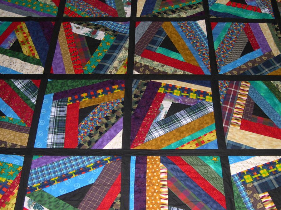 | Design Source - Description | Flannel, foundation pieced on muslin. The quilt weighs 10 pounds! My son wanted a warm quilt... |
