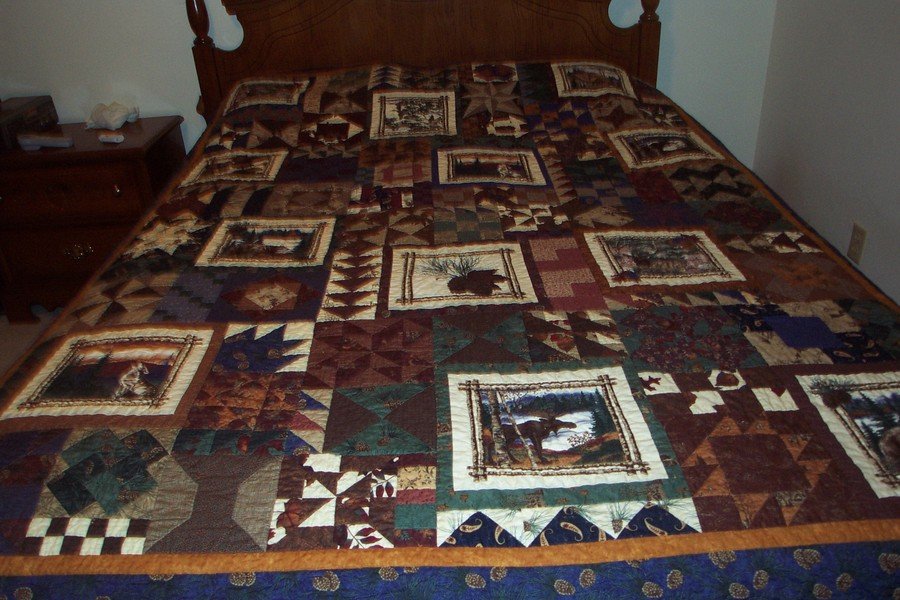 jinglebell440 Northwoods Fun - The panels of Northwoods Crossing became the largest block in the 20" blocks. Various other smaller blocks were made from the coordinating fabrics.