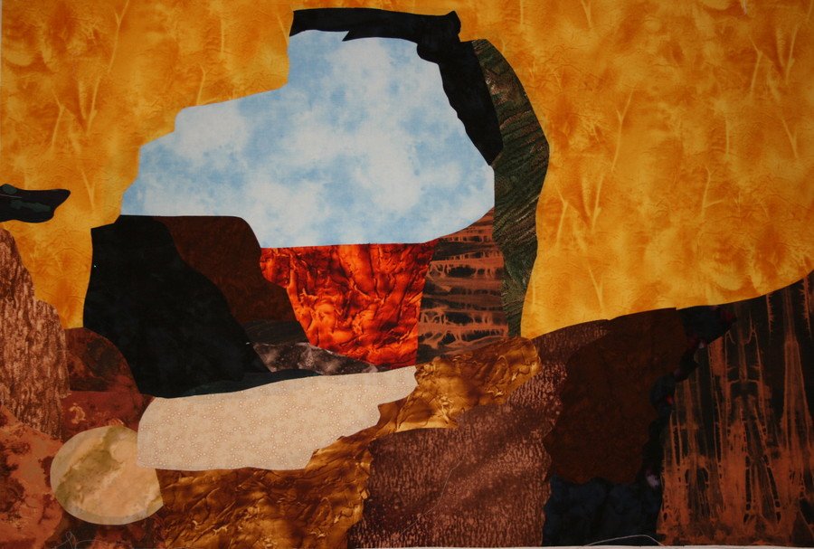 redcheek2 Window Rock - This quilt is an adaption of a picture of WindowRock, which is the capital of the Navajo reservation. It reminds me of my home, which is located on the reservation called Shiprock, NM. It is not finished all the way yet, but I just wanted to share it. I love it because it is the essence of home.