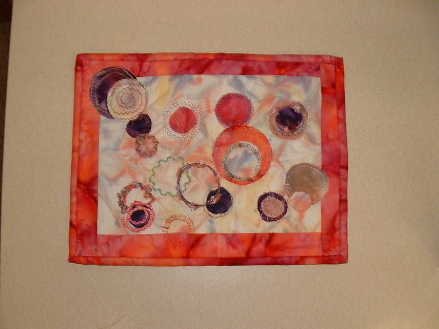 lizquilts February Journal Quilt 2004 - Made for the 2004 Journal Quilt project on quiltart.com list. Chosen for publication in book Creative Quilting: The Journal Quilt Project. edited by Karey Patterson Bresenhan published in 2006. Background was dyed with shaving cream dyeing.