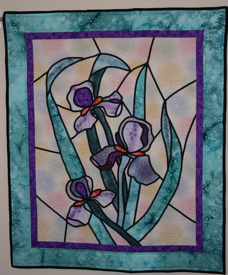 tkwritr My Wild Irises - First attempt at stained glass technique. Design created in response to an "ugly fabric" challenge in our guild and was inspired by watercolor painting done by my mother. (See photo of painting in the personal photos section of my profile.)