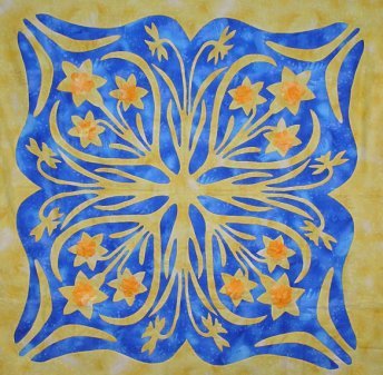 mtneedle Hawaiian Daffodils - Made during a quilt class on Quilt University