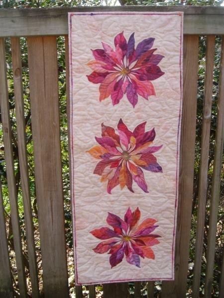 | Design Source - Description | I went to French Lick Indiana to take an incredible workshop with Phil Beaver. After returning home I completed this quilt using fabrics I painted there. The design is his, the layout and quilting are mine. |