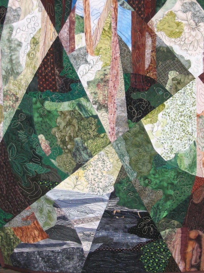 Frances Pacific Spirit Path 1 - I started with a photograph of a nearby park and translated it into fabric using a technique by Katie Pasquini Masopust.