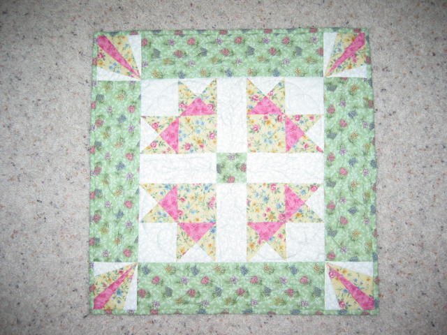 scissorhandscps Spiring Table Topper - This topper was made for our spring table runner/ topper exchange. I used this block and my own paper pieced corner designs to complete it.