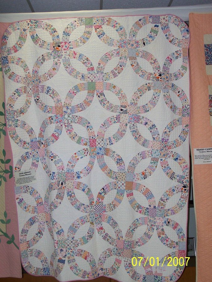 imquilting Double Wedding Ring - This is a quilt we inherited when my husband's aunt passed away. It is in great condition but unfortuanately, along with all the other quilts, we don't know for sure who made them. His aunt quilted but so did his mother, so we aren't certain.