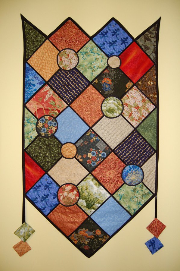 MaryQuilts2 A Taste of the Orient - Wallhanging made in a banner style with oriental fabrics. Hanging in my sewing room.