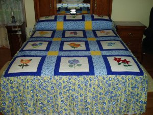 | Design Source - Description | FLOWER BLOCKS PATTERNS WERE ORIGINALLY MADE ON POINT. I CHOOSE TO MAKE THEM ON A 12" SQUARE AND DESIGN MY OWN QUILT TO FIT QUEEN SIZE BED. |