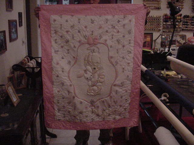 luvmylongarm Precious moments - I recieved this panel from a friend. I did the trapunto on this panel and did the quilting also. I made this quilt for my gd.