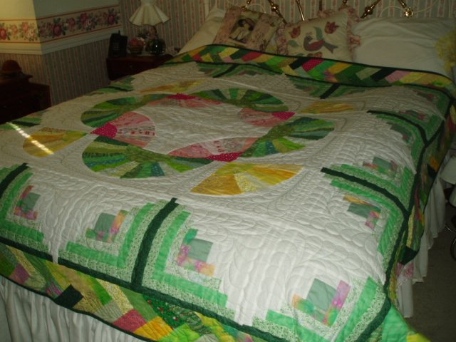 oldquilter Mohawk Trail and Log Cabin - This is the second quilt like this I have made. It goes together fast and I love this color combination.