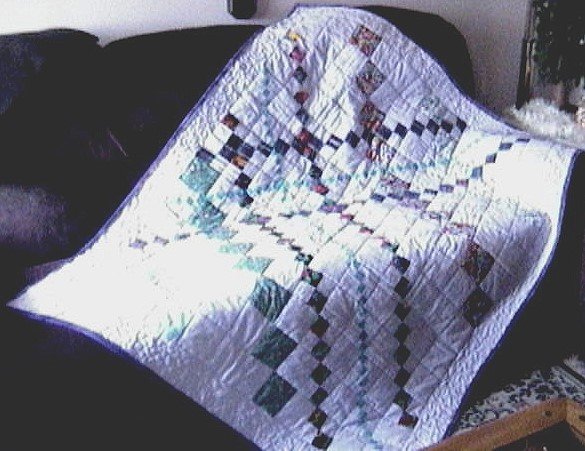 | Design Source - Description | Started thought planning in '89, pieced and semi-quilted in '94, border quilted and binding done in 2006. Used my Singer that was made in"1876" to finish the binding! |