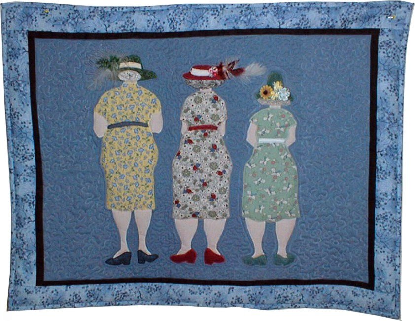 stjoan Looking out to the Second Half - I made 3 of these for 2 friends and myself to celebrate our 50th birthdays in 1998. Sandy and I visited Jan in San Diego to celebrate. The original pattern had a 4th lady -- a tall and thin one. She didn't represent any of us, so I left her out. I also made another version with only 2 ladies -- for my sister-in-law's 50th birthday.
