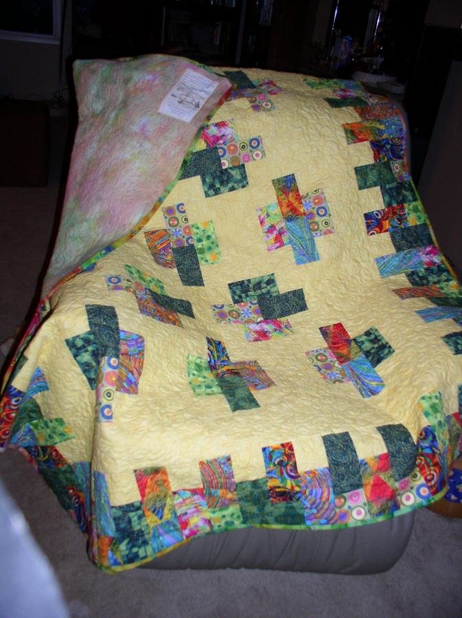 Walknrun Cheese & Crackers - The quilt was made for a member of our church who was undergoing intense treatment at MD Anderson for ovarian cancer. I constructed the quilt at a class offered at Sowing Sisters Quilt Shop in Carlsbad CA.