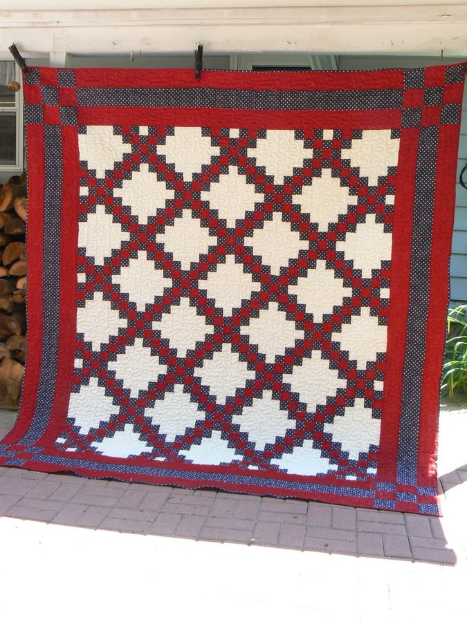 sewquiltcrazy Double Irish Chain - machine pieced and quilted. quilting is done with varigated red/white/blue thread. hobbs heirloom batting. this quilt is for sale. contact sewquiltcrazy@aol.com