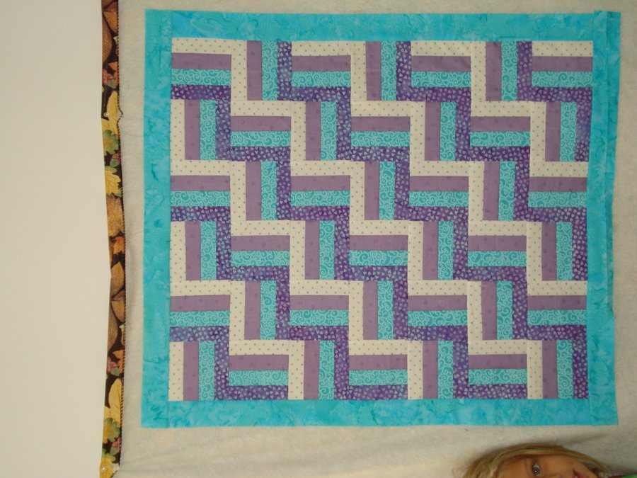 luv2quilt217 Aqua & Purple - Pieced fence rail in white, purple, aqua, in process