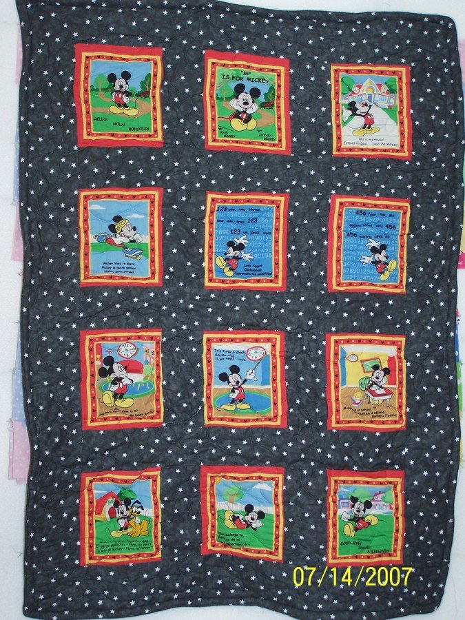 patchartist mickey baby! - I cut up a preprinted fabric book panel and sashed it togather to make a childs quilt and made a second panel into a book to go along with it