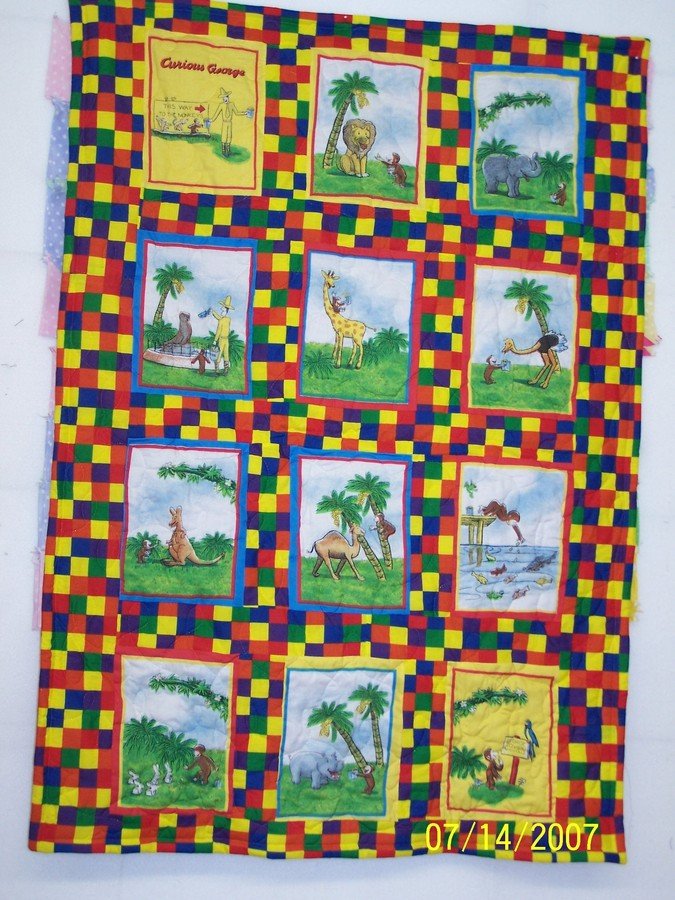 patchartist curious george baby! - cut apart fabric book panels and sashed together also made up a fabric book to match!